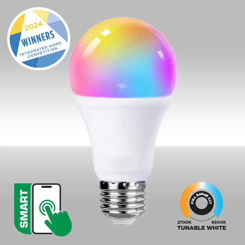 MaxLite?s New SMART A19 Lamp offers the flexibility of changing either the lamps CCT color temperature from 2700-6000K or its RGB color hue depending on the users mood. By effortlessly rotating the dial within the mobile app (iOS/Android), you can easily assign various colors to the lamp. Complete control over the lamp's functionality, from powering it on to tuning the colors, can be achieved using most smart home hubs like google and alexa.