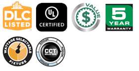 - DLC qualified at 125 Lumens per watt