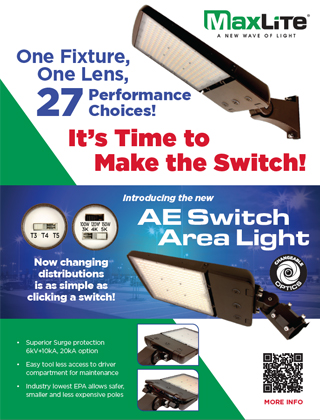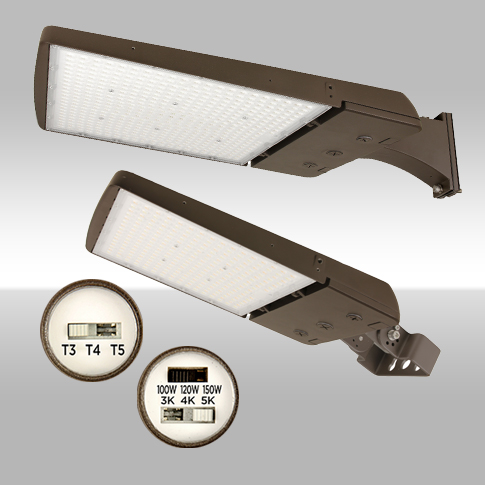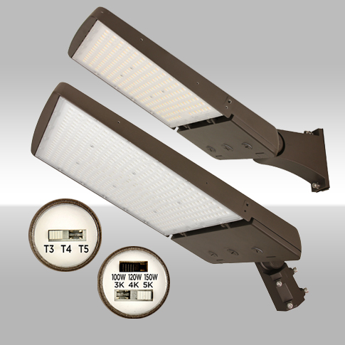 The AE Switch Area Light offers tremendous selectability and controls capabilities. Besides CCT and Wattage choices, it expands its versatility to include changing distributions between Types 3, 4 and 5! It covers wattages ranging from 75W-300W in either 120-277V or 277-480V using two low EPA housings. It also offers a variety of